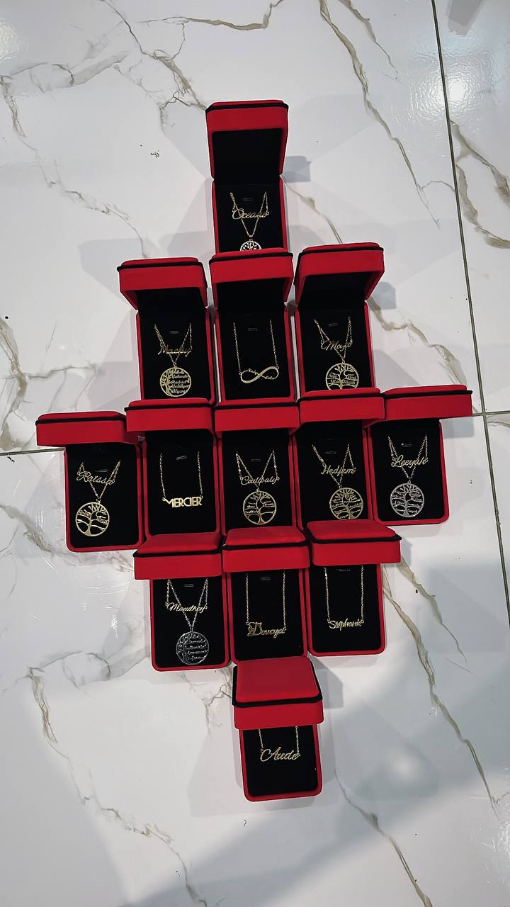Vous pouvez personnaliser votre arbre avec 1 à 9 prénoms selon le modèle choisi. Nos clientes avec familles nombreuses adorent voir tous leurs petits-enfants représentés sur leur collier !